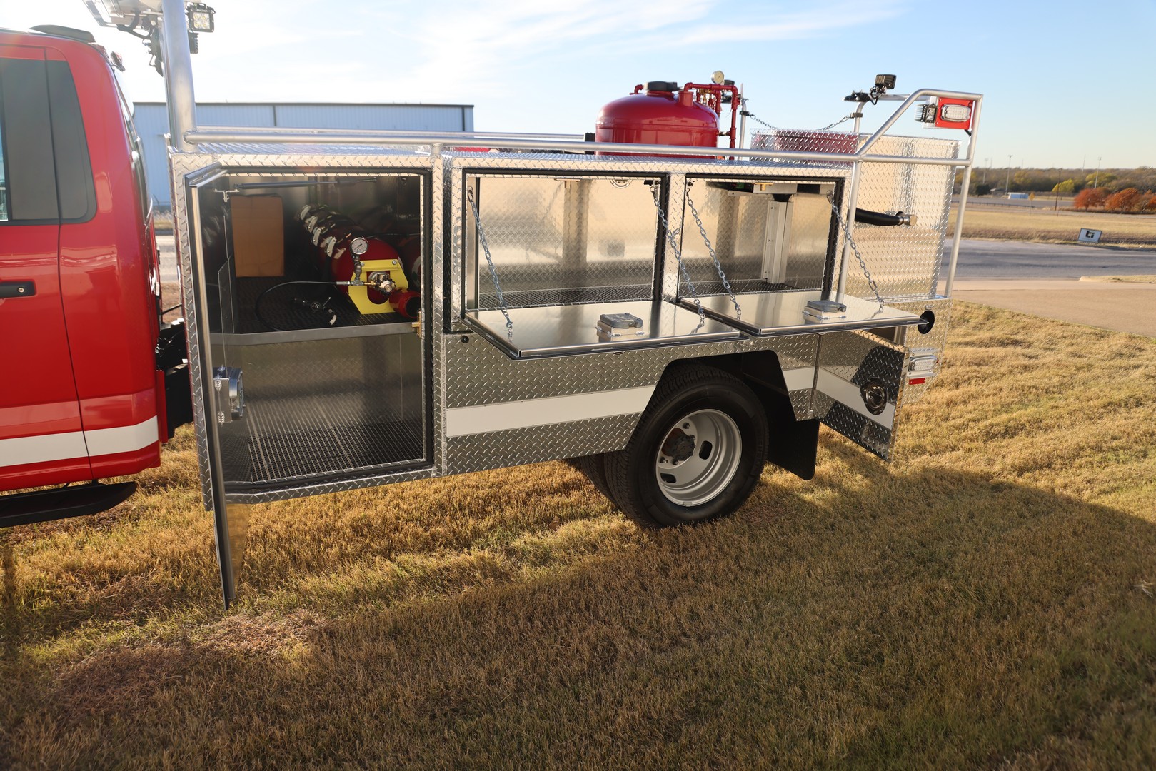 Our team has completed a new QRV Attack Master unit made for our partners at QRV for the Clark County Aviation. Its a QRV Ford 2 door with a 150 Gallon Poly water tank, 20 Gallon Foam Tank and a 450# Dry Chem Purple K Capacity.