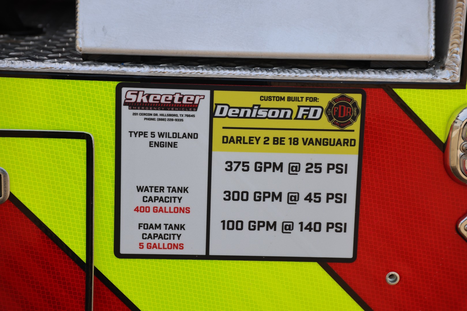 Our team has completed a new Type 5 Wildland Engine for Denison FD. It’s a Ford 4 door diesel with a 400 Gallon Poly water tank and 5 Gallon Foam Tank.