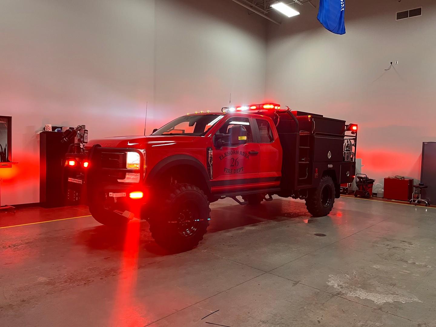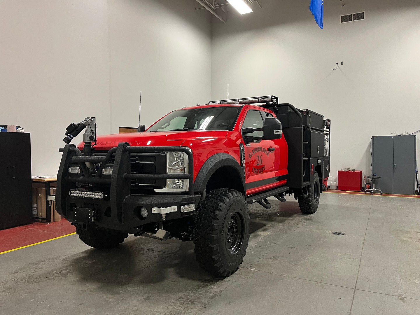 Our team has completed a new Type 5 Step Side for Elkhorn Fire Department. It’s a Ford 4 door diesel with a 300 Gallon Poly water tank.