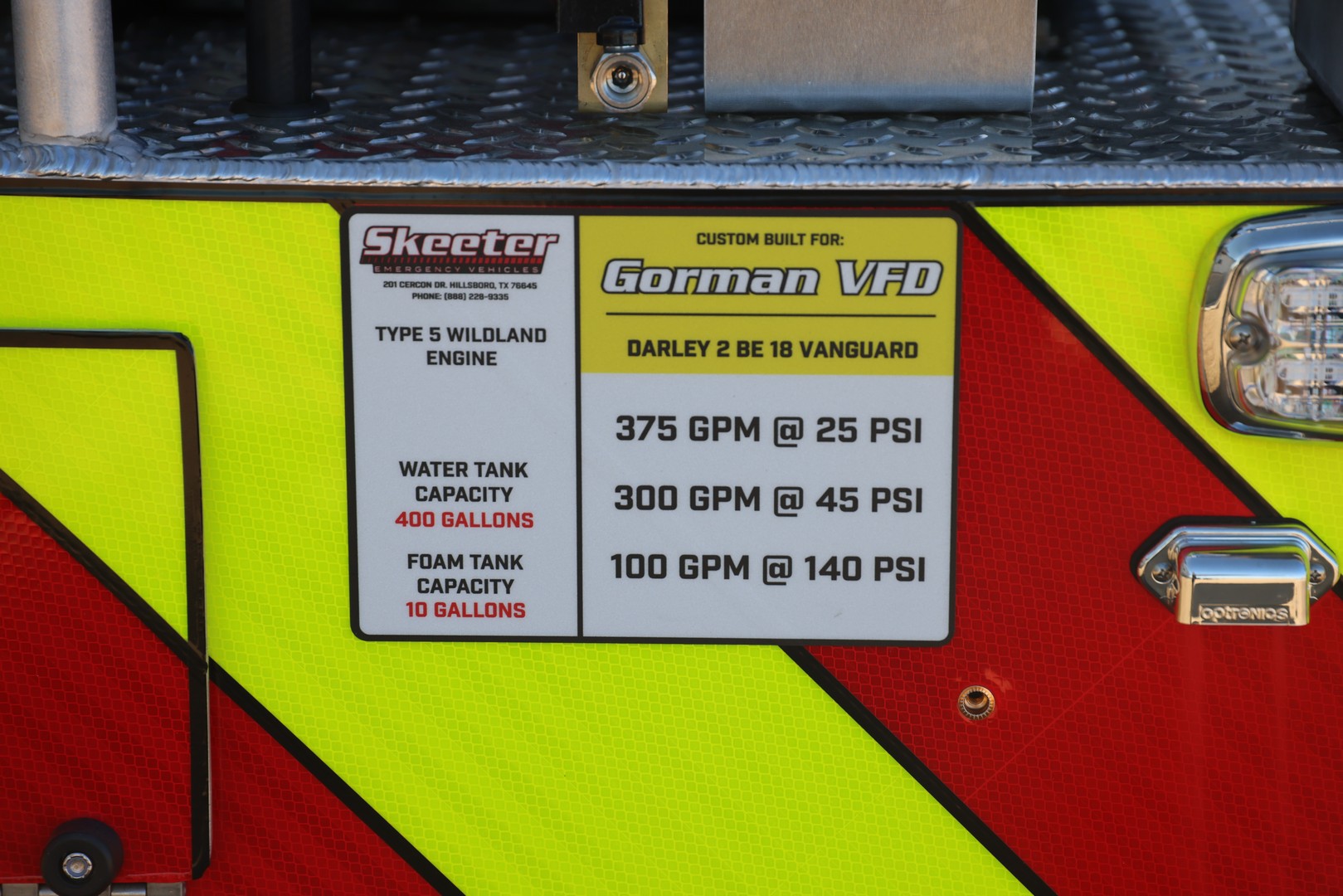 Our team has completed a new Type 5 Wildland Engine for Gorman VFD. It’s a Ford 2door diesel with a 400 Gallon Poly water tank and 10 Gallon Foam Tank.