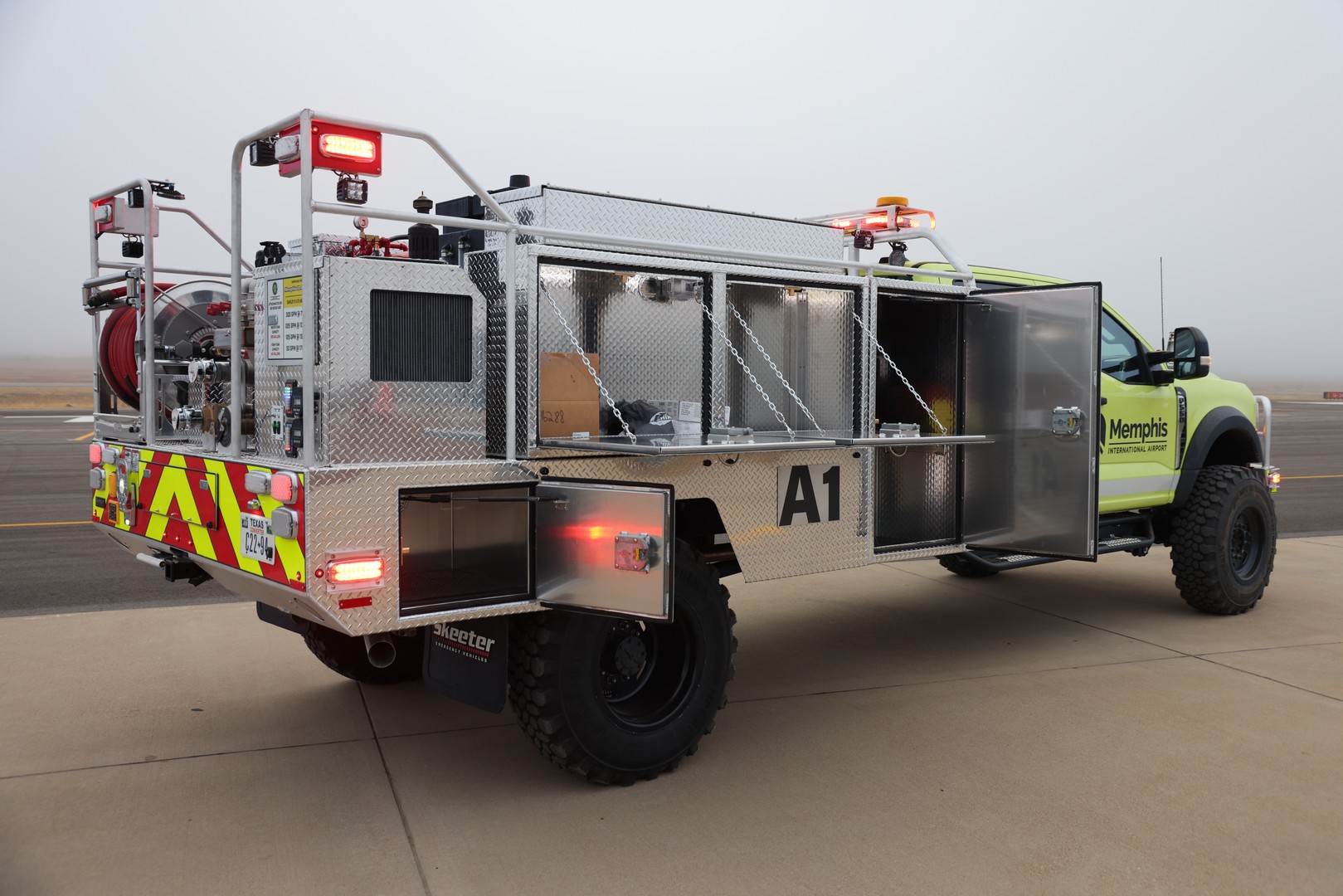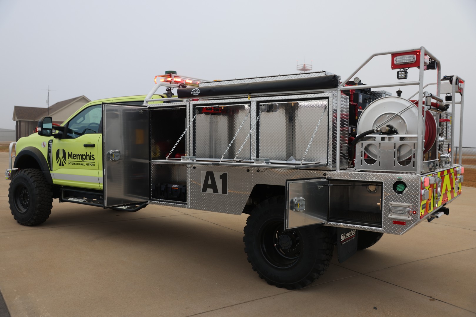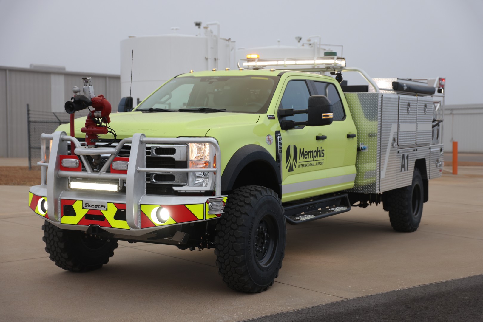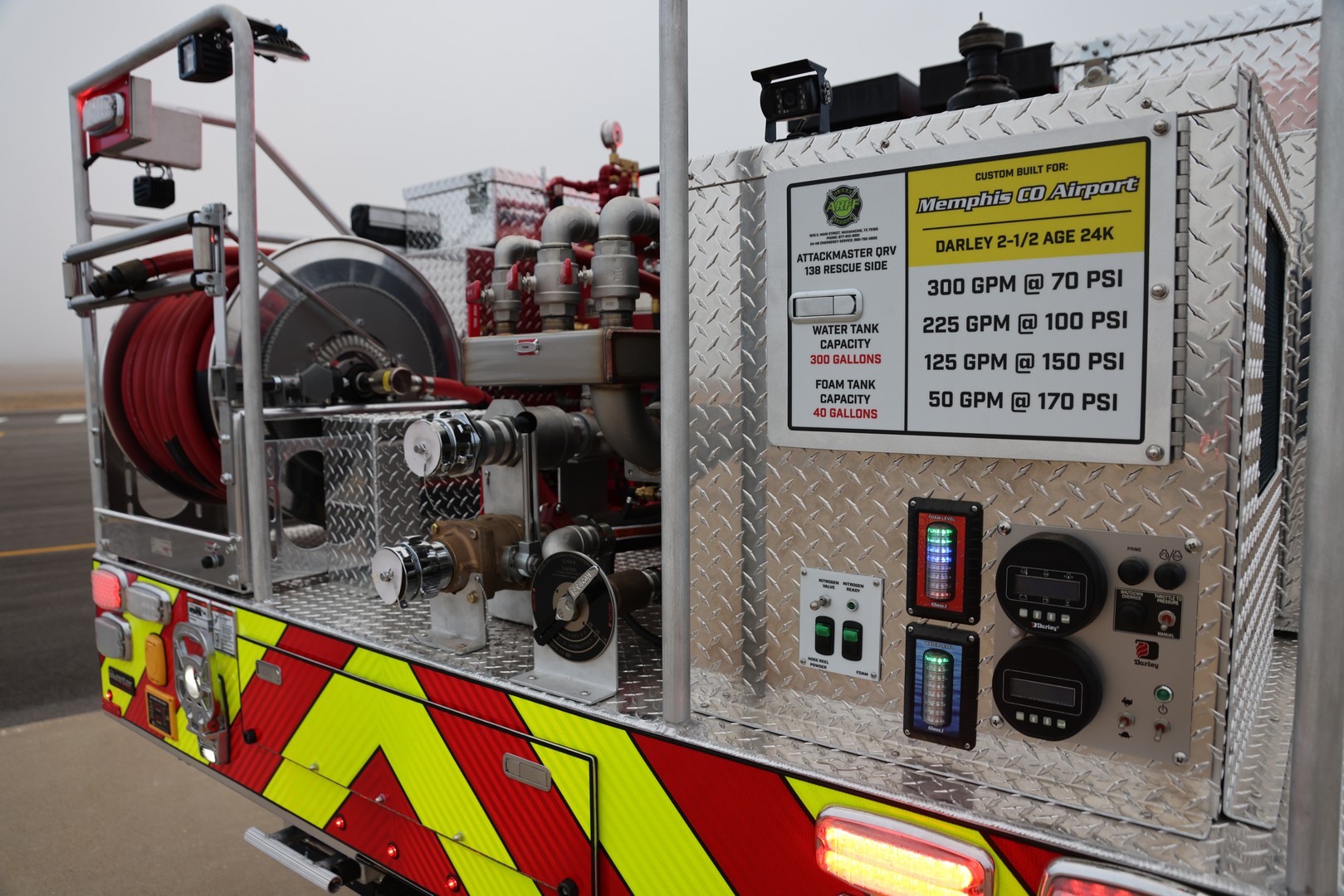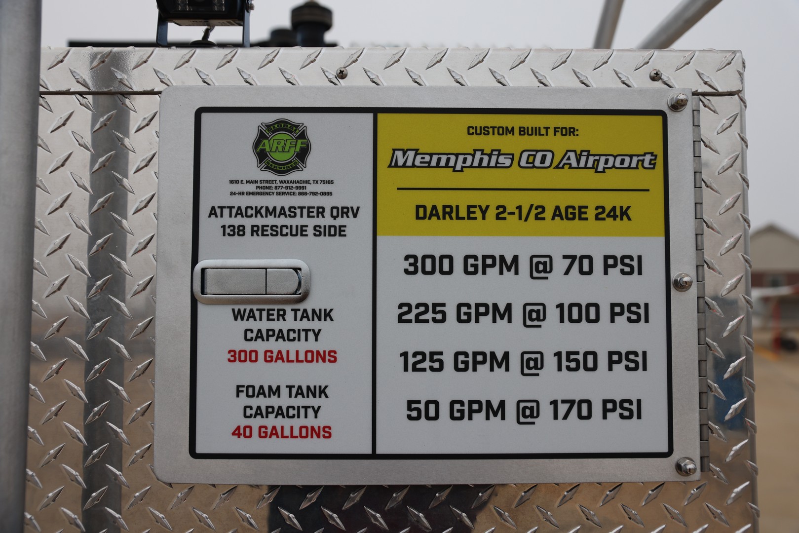 Our team has completed a new Attackmaster QRV Rescue Side for Memphis Co. Airport. It’s a Ford 4 door diesel with a 300 Gallon Poly water tank and 30 Gallon Foam Tank.