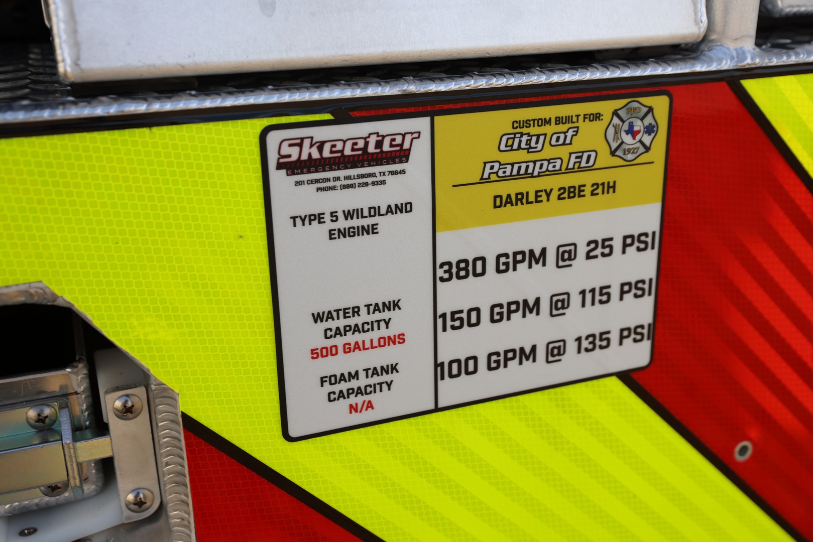 Our team has completed a new Type 5 wildland unit for Pampa. It’s a Ford 2 door GAS V8 with a 500 Gallon Poly water tank.